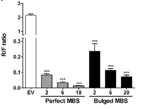 miRNA通过碱基互补配对的方式识别靶基因的3’UTR区,并根据互补程度的不同指导沉默复合体降解靶mRNA或者阻遏靶mRNA的翻译。根据软件或数据库预测靶位点及构建靶位点的荧光素酶载体并检测。详细介绍,请点击下面链接: