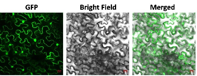 亚细胞定位是指某种蛋白或表达产物在细胞内的具体存在部位。例如在核内、胞质内或者细胞膜上存在。GFP是绿色荧光蛋白,在扫描共聚焦显微镜的激光照射下会发出绿色荧光,从而可以精确地定位蛋白质的位置。